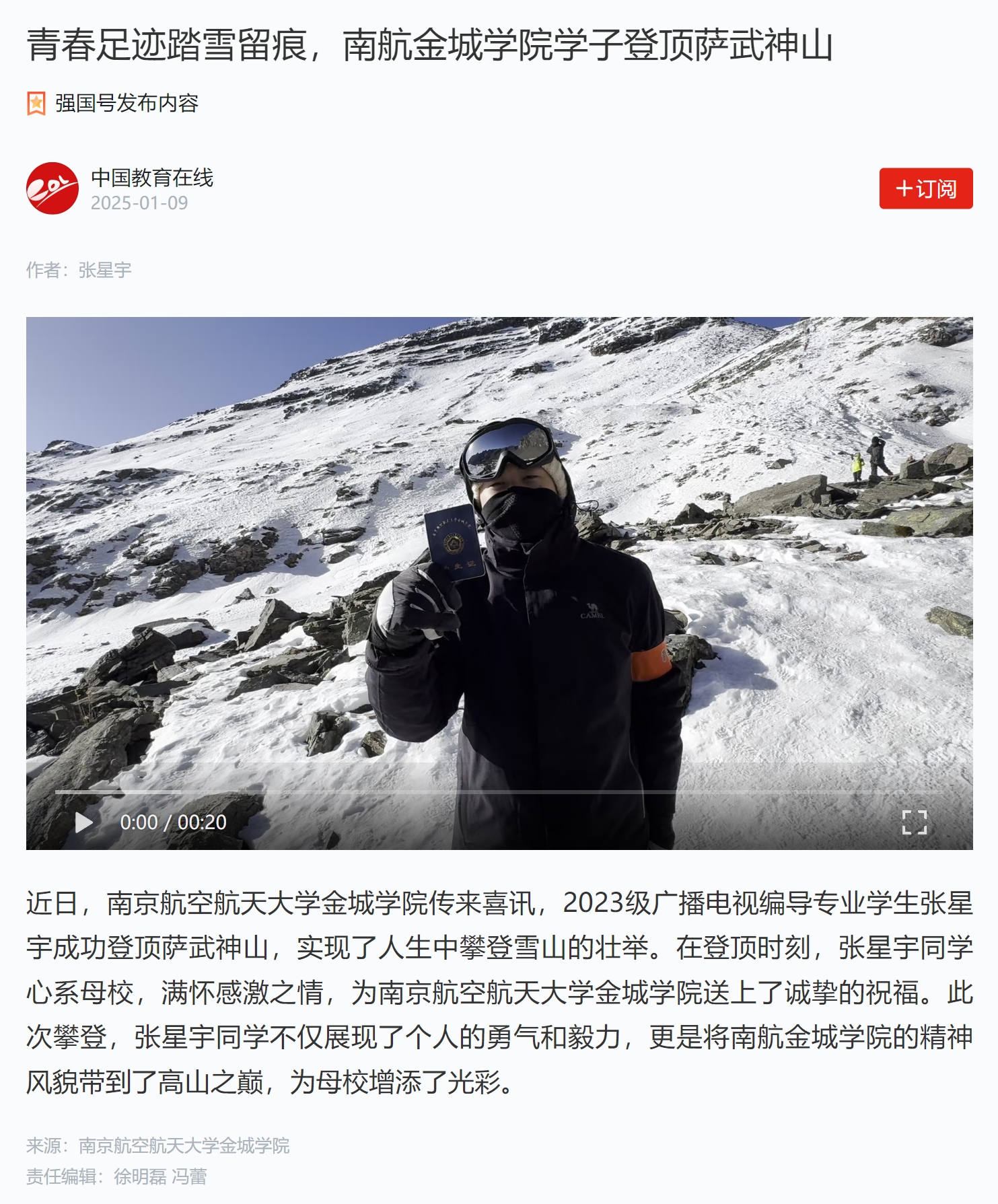 【学习强国】青春足迹踏雪留痕,南航黄色漫画 学子登顶萨武神山