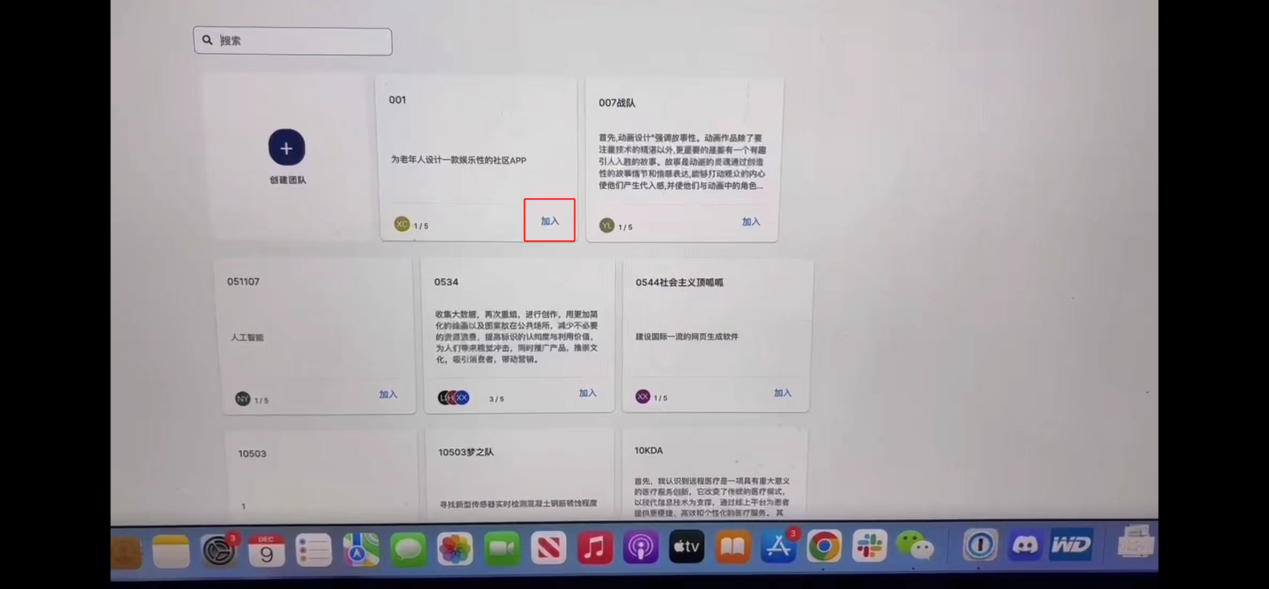 3. 如果遇到无法邀请队友时,请队友在创建团队页面搜索对应的队伍,点击“加入”按钮,由队长同意即可。