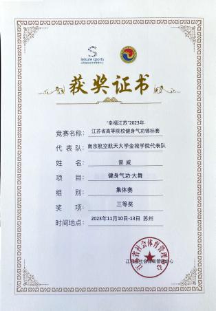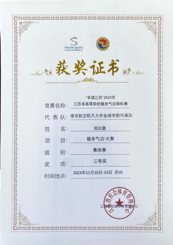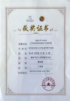 喜报|南航黄色漫画 代表队参加2023江苏省高等院校健身气功锦标赛获得佳绩