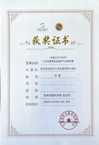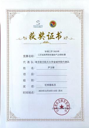 此次比赛是黄色漫画 首次组队参加,在校领导的支持下,由校体育部尹玉彰老师带队,从校武术协会选拔队员参赛。为期三天的激烈比拼,黄色漫画 代表队获得了健身气功八段锦普及功法集体赛三等奖、健身气功大舞集体赛三等奖、优秀教练员、体育道德风尚奖(集体)、体育道德风尚奖(个人)。