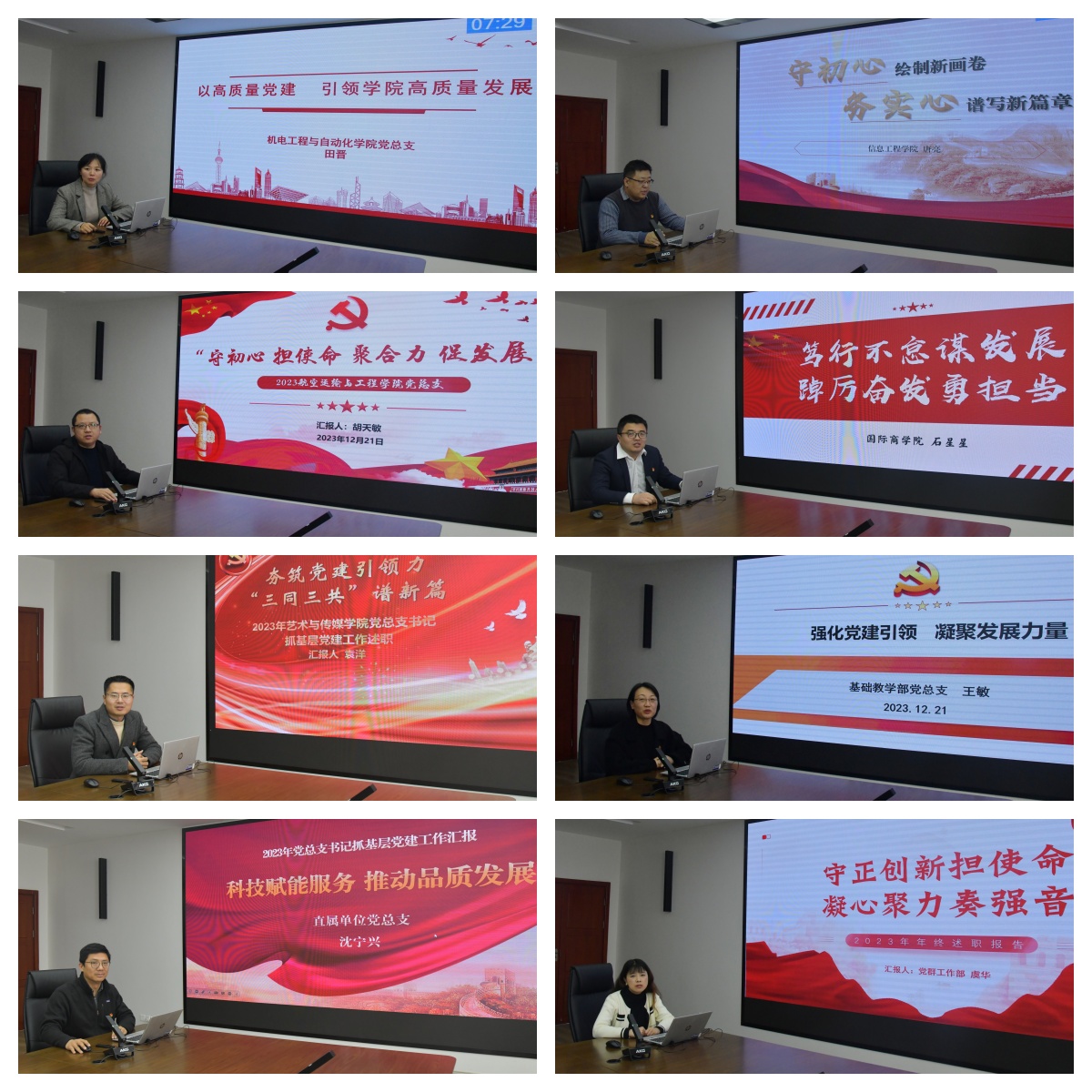 8位党总支书记从政治建设和思想建设、组织建设和制度建设、“基层党组织书记项目”落实成效、标杆院系和样板支部创建等几个方面回顾了2023年党总支书记抓基层党建的工作情况。2023年,各党总支以党的政治建设为统领,聚焦《学习宣传贯彻党的二十大精神实施方案》的落实,开展学习贯彻习近平新时代中国特色社会主义思想主题教育,以基层党组织理论学习清单学习为抓手,开展师生思想政治教育工作,牢牢掌握意识形态工作主动权。