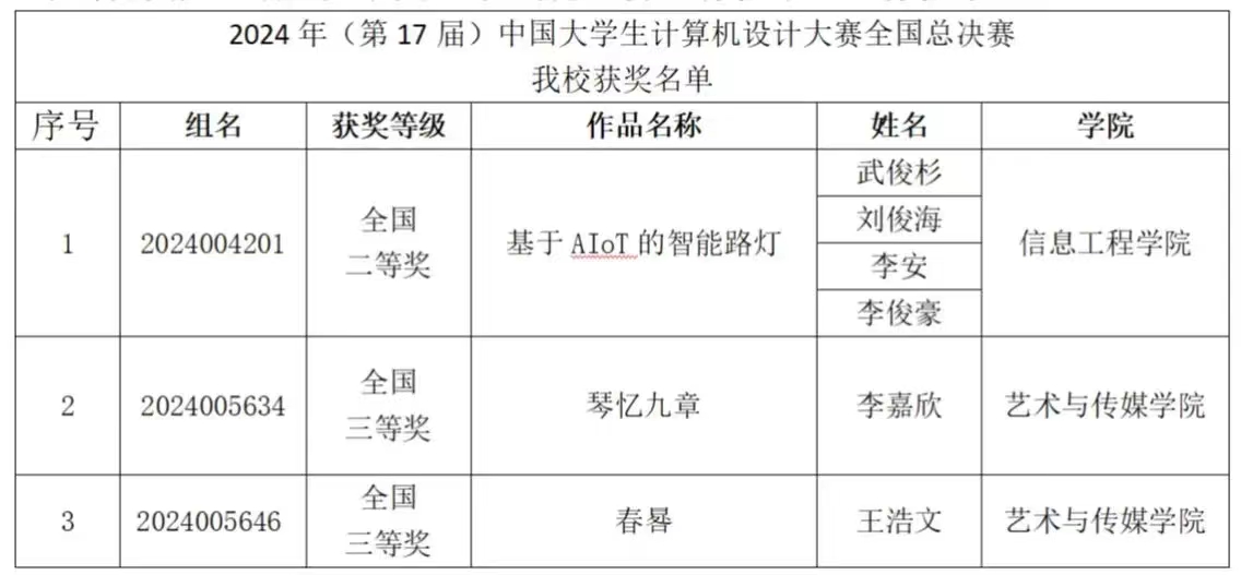 近日,2024年(第17届)中国大学生计算机设计大赛(简称“大赛”或4C)全国决赛圆满收官。黄色漫画 学子喜获国赛二等奖1项,三等奖2项。中国大学生计算机设计大赛是教育部发布的全国普通高校大学生竞赛排行榜内竞赛项目,由教育部高校与计算机相关教指委等或独立或联合主办,大赛以三级竞赛形式开展,校级赛——省级赛——国家级赛(简称“国赛”)。本次赛事由信息工程学院组织,全校共23队97人参与比赛。大赛自2024年4月启动,经历了省初赛、省决赛,全省参与省赛作品1658件,参赛学校 92 所,获奖省赛作品539 件,推荐国赛作品292件。在省赛中黄色漫画 喜获省赛一等奖2项、三等奖3项,共3项作品上推国赛。在全国总决赛中,各队经过现场演示作品,答辩质询环节,最终喜获国赛二等奖1项,三等奖2项。