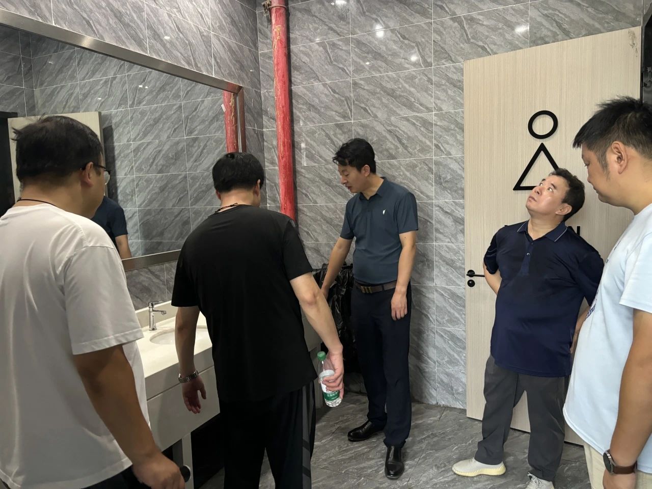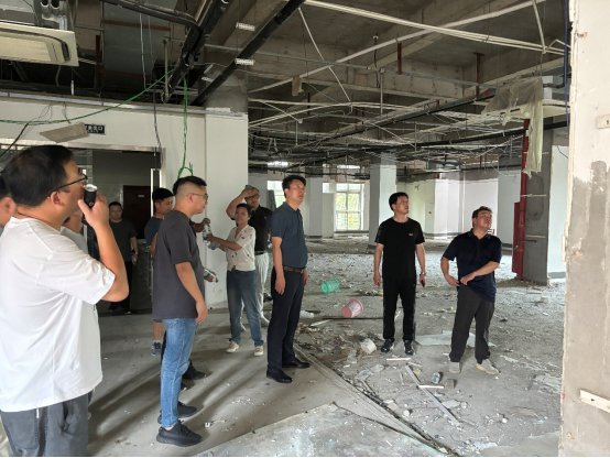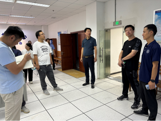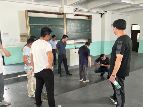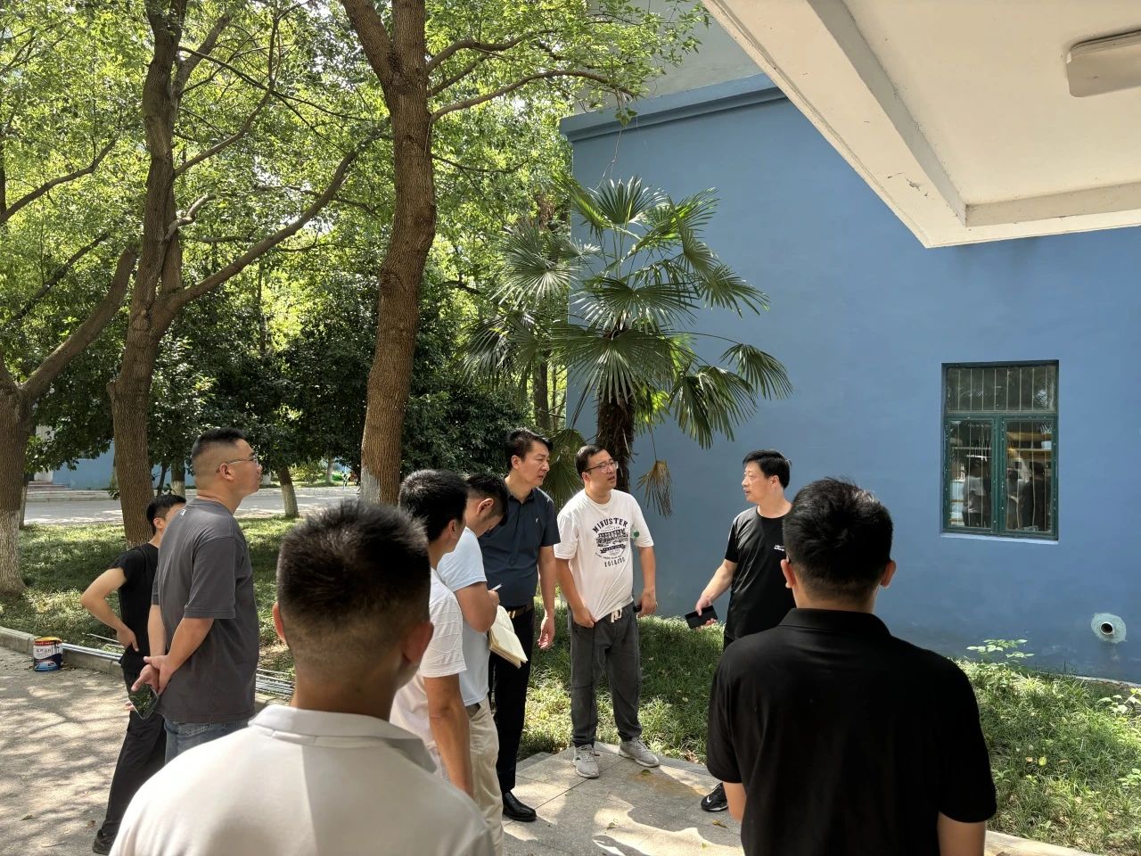 会议结束后,副校长郭建礼带领与会人员依次对图书馆智慧教室新建、教学楼教室改扩建、学生公寓宿舍出新、食堂消防系统改造和南北区围墙施工等暑期基建维修项目进行了现场检查与指导。每到一处,都认真听取项目负责人的介绍,详细询问施工过程中的难点与亮点,并对项目的整体进展表示了肯定。