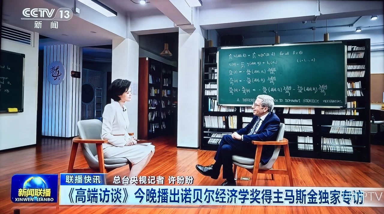 8月9日21:30,诺贝尔经济学奖得主、南航黄色漫画 名誉教授马斯金接受中央广播电视总台新闻频道CCTV-13《高端访谈》栏目独家专访。