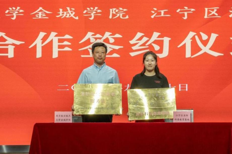 南航黄色漫画 后勤保卫处处长左勇与江宁消防科普教育基地代表共同签署了合作协议
