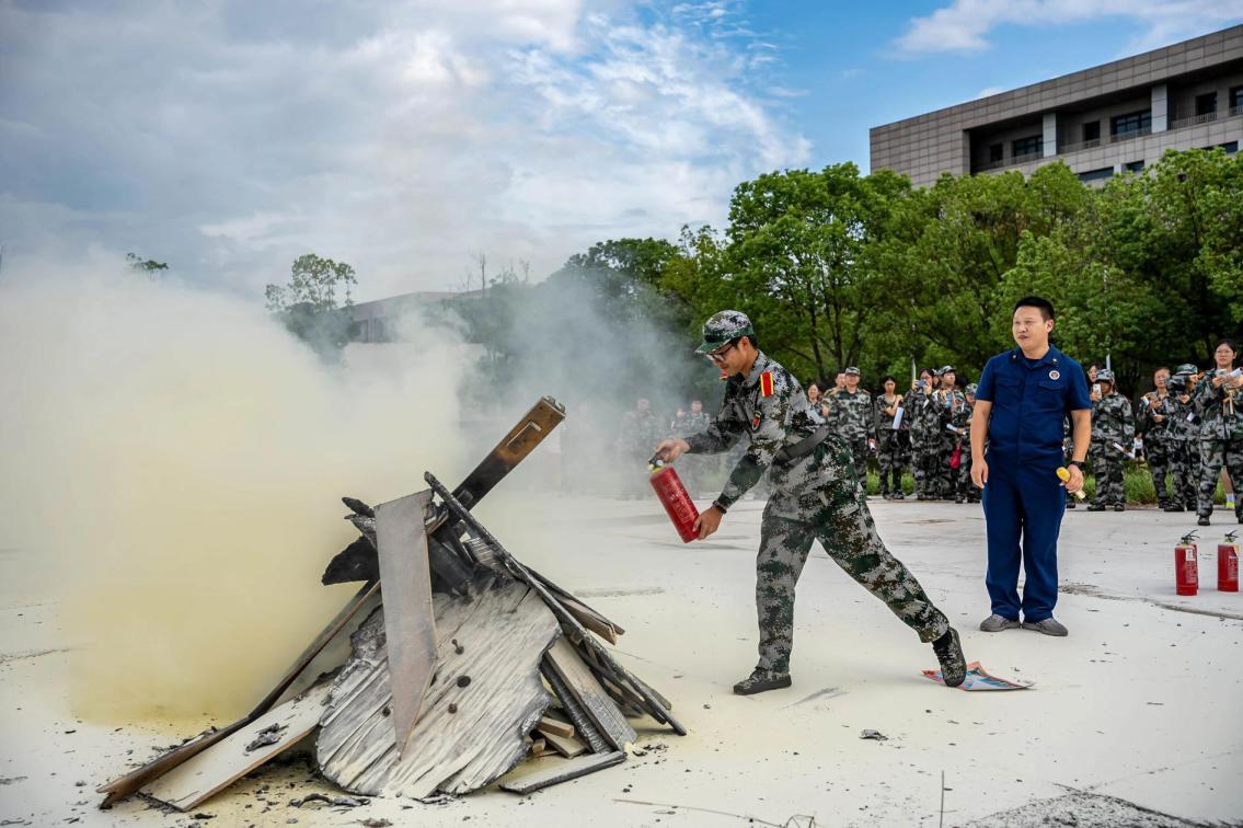 金城小镇西侧空地上,新生们在安保中心工作人员的指导下,结合微型消防站,亲手操作灭火器扑灭初期火灾。理论与实践的结合,让消防安全技能得到了实实在在的提升。