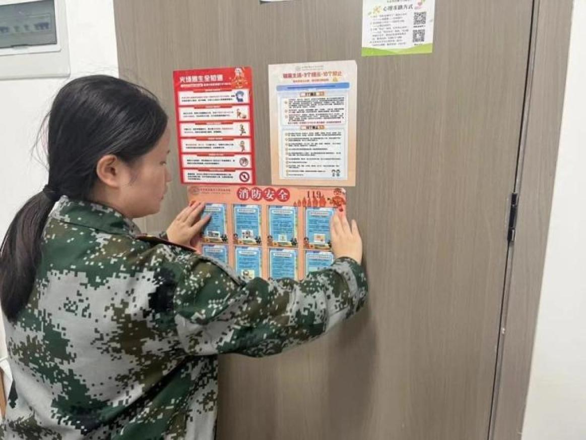 寝室长们将领取的消防安全彩页张贴在宿舍显眼位置,并向室友们普及消防安全知识。这一举措将消防安全知识深入到了每一个宿舍,营造了人人关注消防、人人参与消防的良好氛围。
