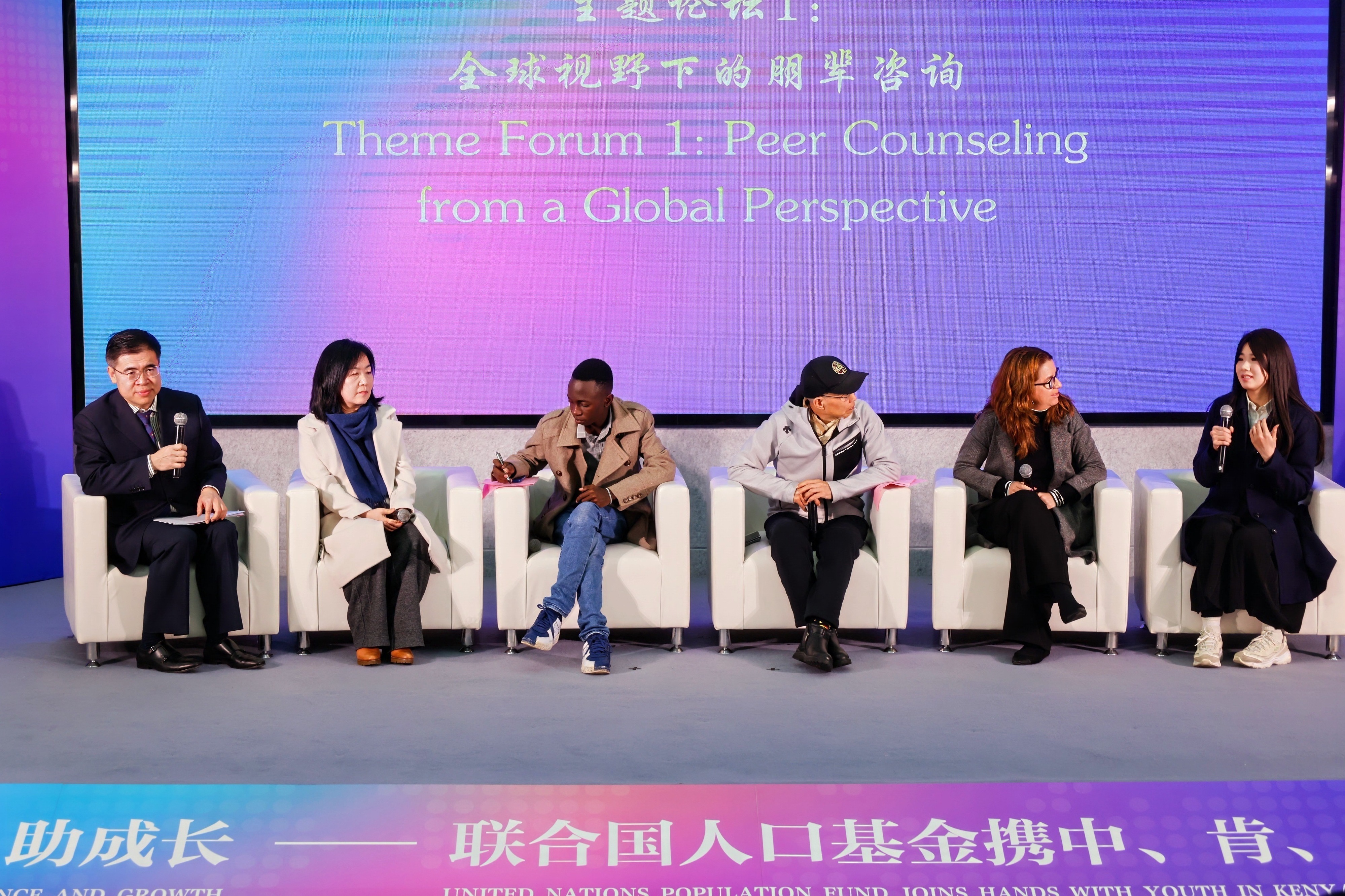 在主题论坛环节,联合国人口基金驻华助理代表彭炯先生围绕“全球视野下的朋辈咨询”这一主题与现场嘉宾展开主题讨论。联合国人口基金驻肯尼亚副代表Pilar de la corte Molina博士深入探讨了朋辈咨询在不同文化背景下的应用与效果。