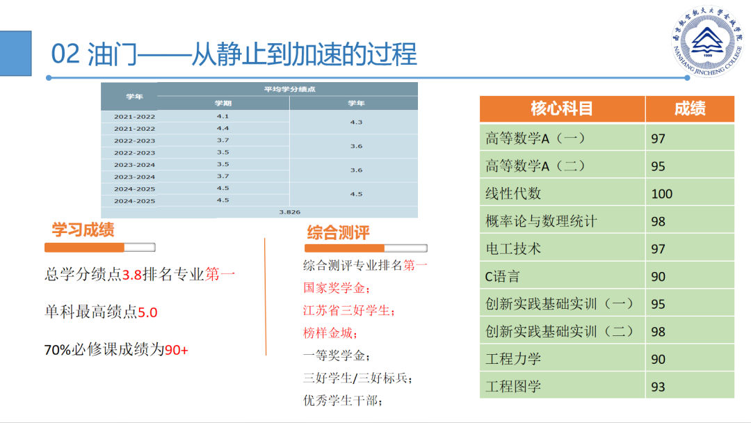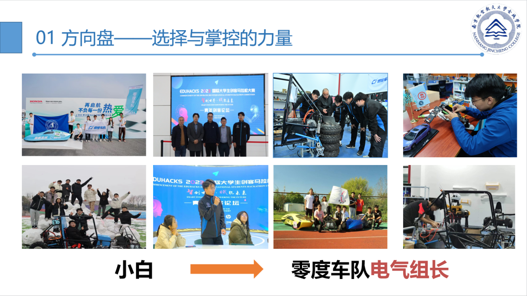 我是机电工程与自动化学院车辆工程专业的大四学生郑轩,来自江苏淮安。今天,我想用“方向盘、油门、换挡杆”这三个关键词,和大家分享我在南航金城学习与成长的故事