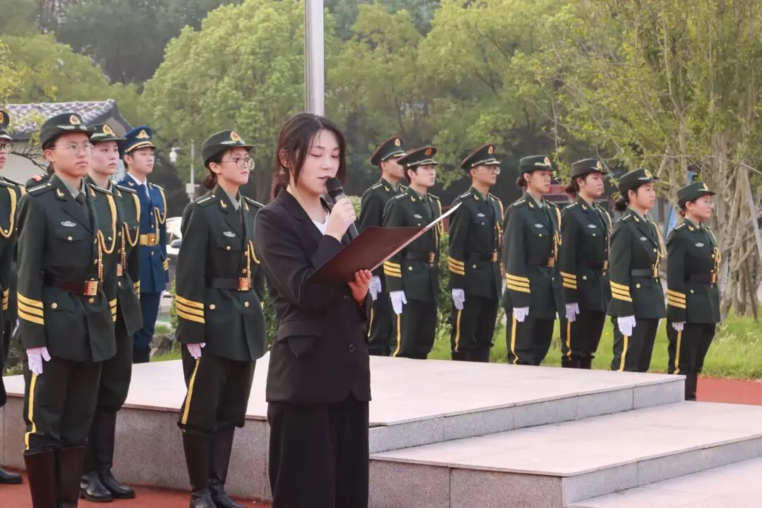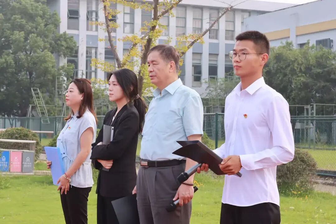 清晨,秋日晨光遍洒校园,升国旗仪式现场气氛庄严肃穆。国旗护卫队迈着铿锵有力、整齐划一的步伐,庄严护送国旗入场。伴随着激昂的《义勇军进行曲》,全体师生肃然而立,向冉冉升起的五星红旗行注目礼,目光坚定而炽热,深切表达对祖国的崇高敬意与无限热爱。