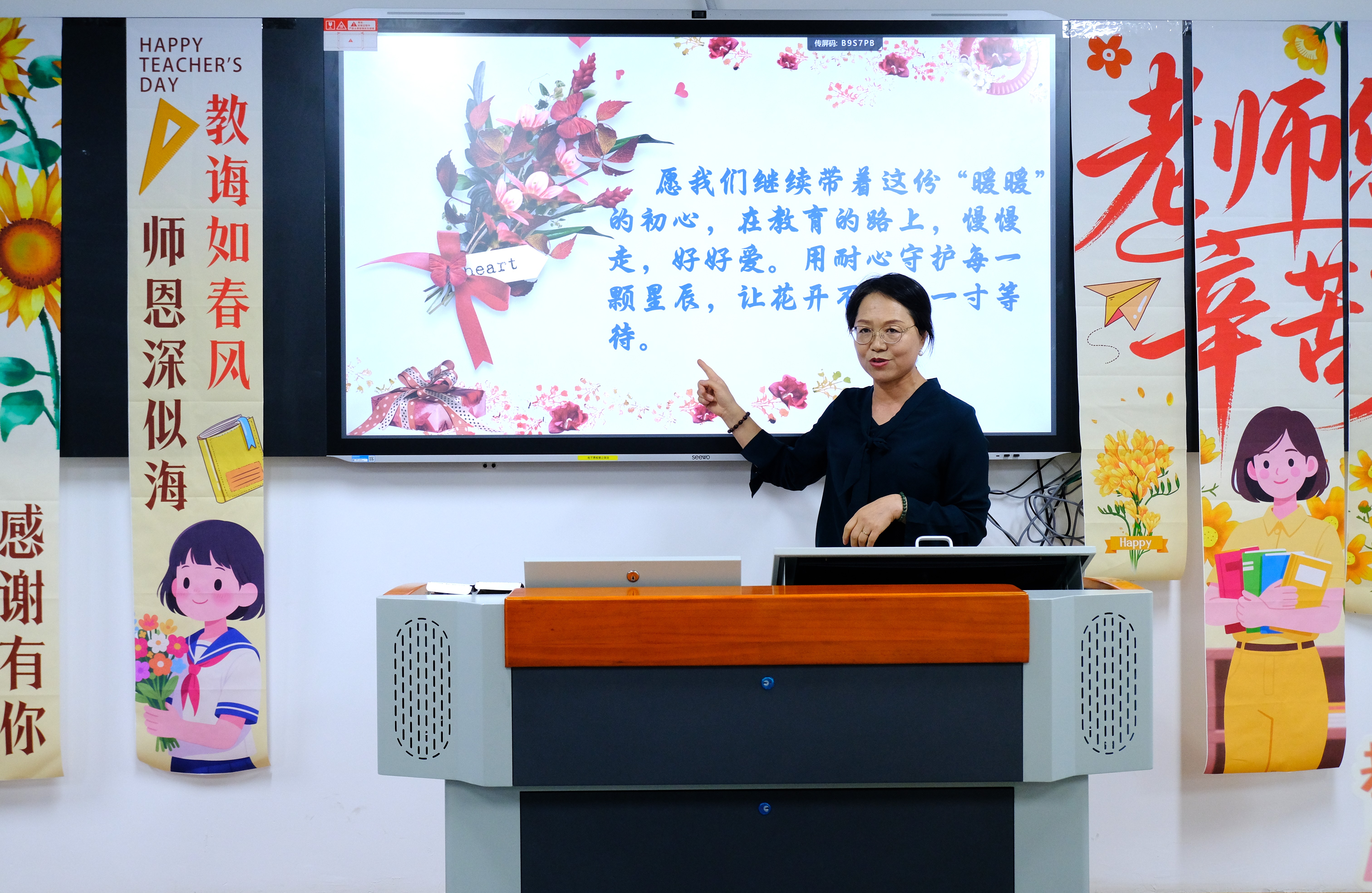 会议伊始,院长刘文波代表学院向辛勤耕耘在教育一线的全体教师致以节日的诚挚祝福。她深情寄语全院教师,希望大家永葆“暖暖”的教育初心,秉承“慢慢走,好好爱”的育人理念,以足够的耐心守护每一位学生的成长,静待花开。教育不仅是知识的传递,更是心灵的对话与生命的影响,要让每一位学生都感受到教育的温度。