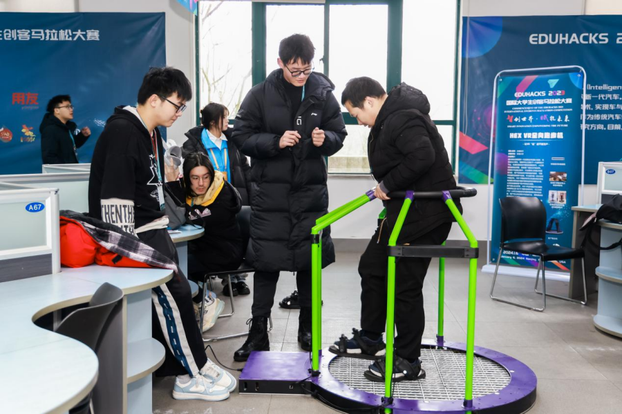 海内外赛道胜出的四强选手,在总决赛的赛场上通过网络连线开展了激烈比拼。经过作品汇报、提问互辩和评委提问等环节的竞争,东南大学步虚此行团队的“HEXVR全向跑步机”项目,赢得了评委们的赞许,凭借出色的表现最终获得本次大赛特等奖。此外,西北工业大学WMJ2团队、美国华盛顿大学LookLoud.AI团队和OrganicTranslator团队获得一等奖。东南大学“息壤”长寿命智慧道路,华中科技大学智造未来等16支团队获得二等奖。
