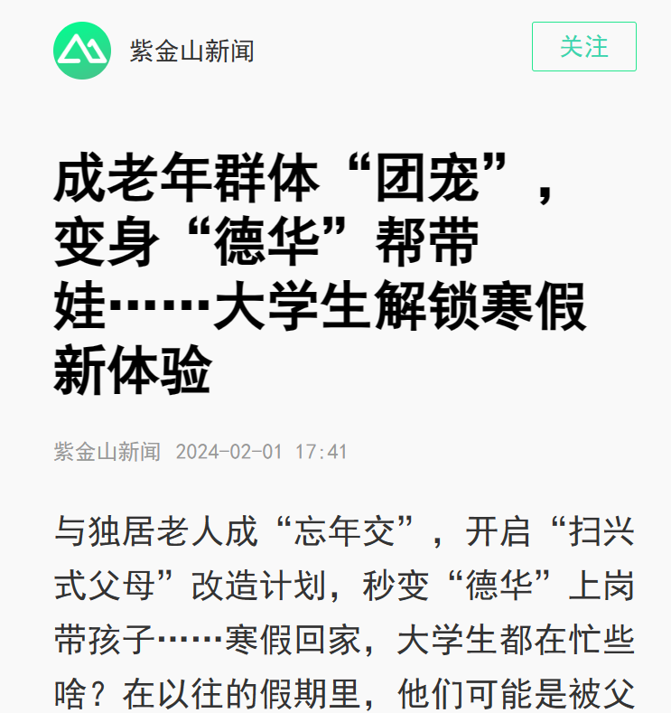 【紫金山】成老年群体“团宠”,变身“德华”帮带娃……大学生解锁寒假新体验