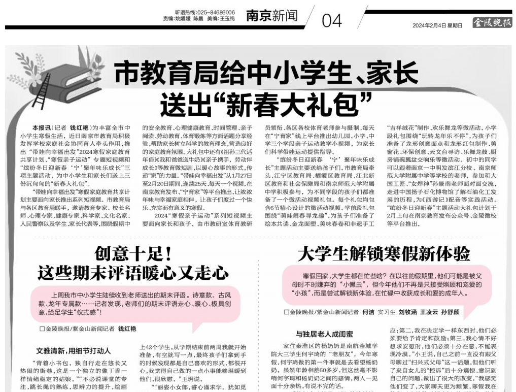金陵晚报-大学生解锁寒假新体验 (njdaily.cn)