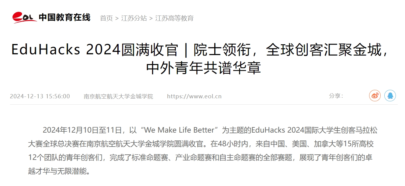 【中国教育在线】EduHacks 2024圆满收官 | 院士领衔,全球创客汇聚金城,中外青年共谱华章
