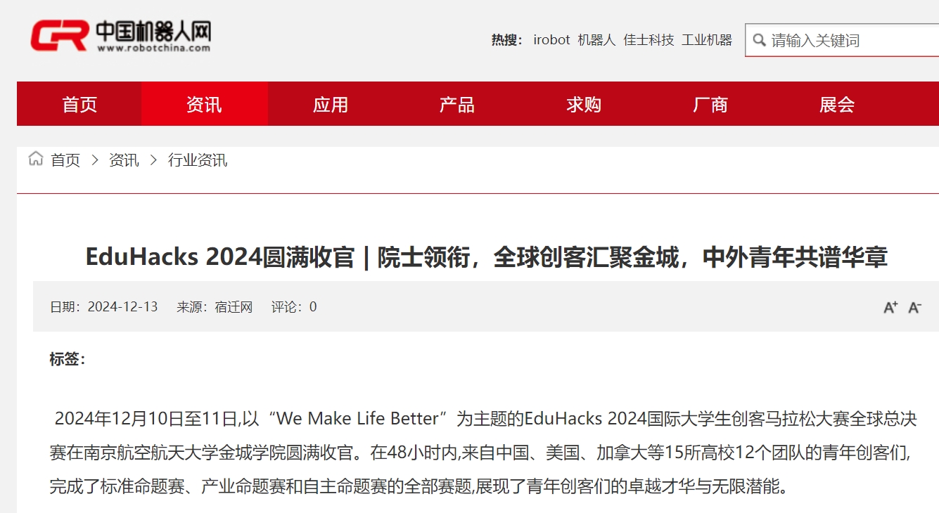 【中国机器人网】EduHacks 2024圆满收官 | 院士领衔,全球创客汇聚金城,中外青年共谱华章