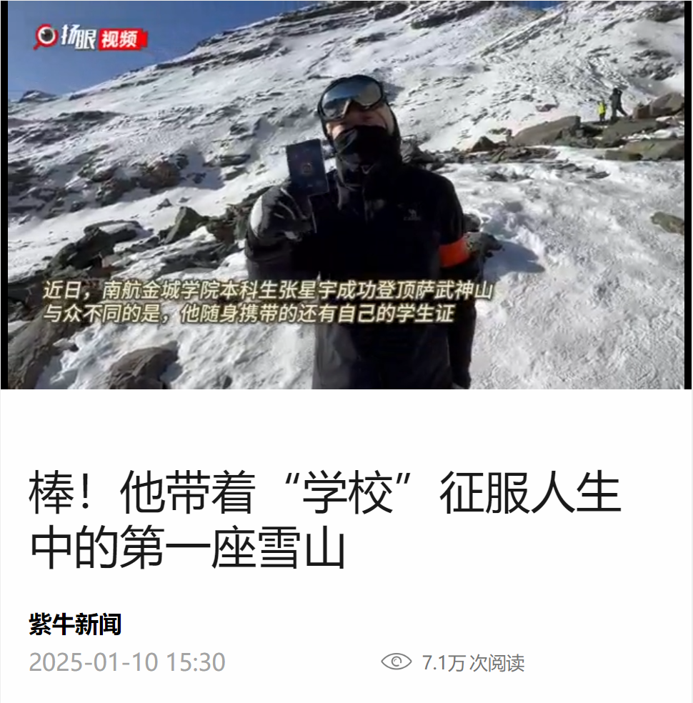 【扬子晚报】棒!他带着“学校”征服人生中的第一座雪山