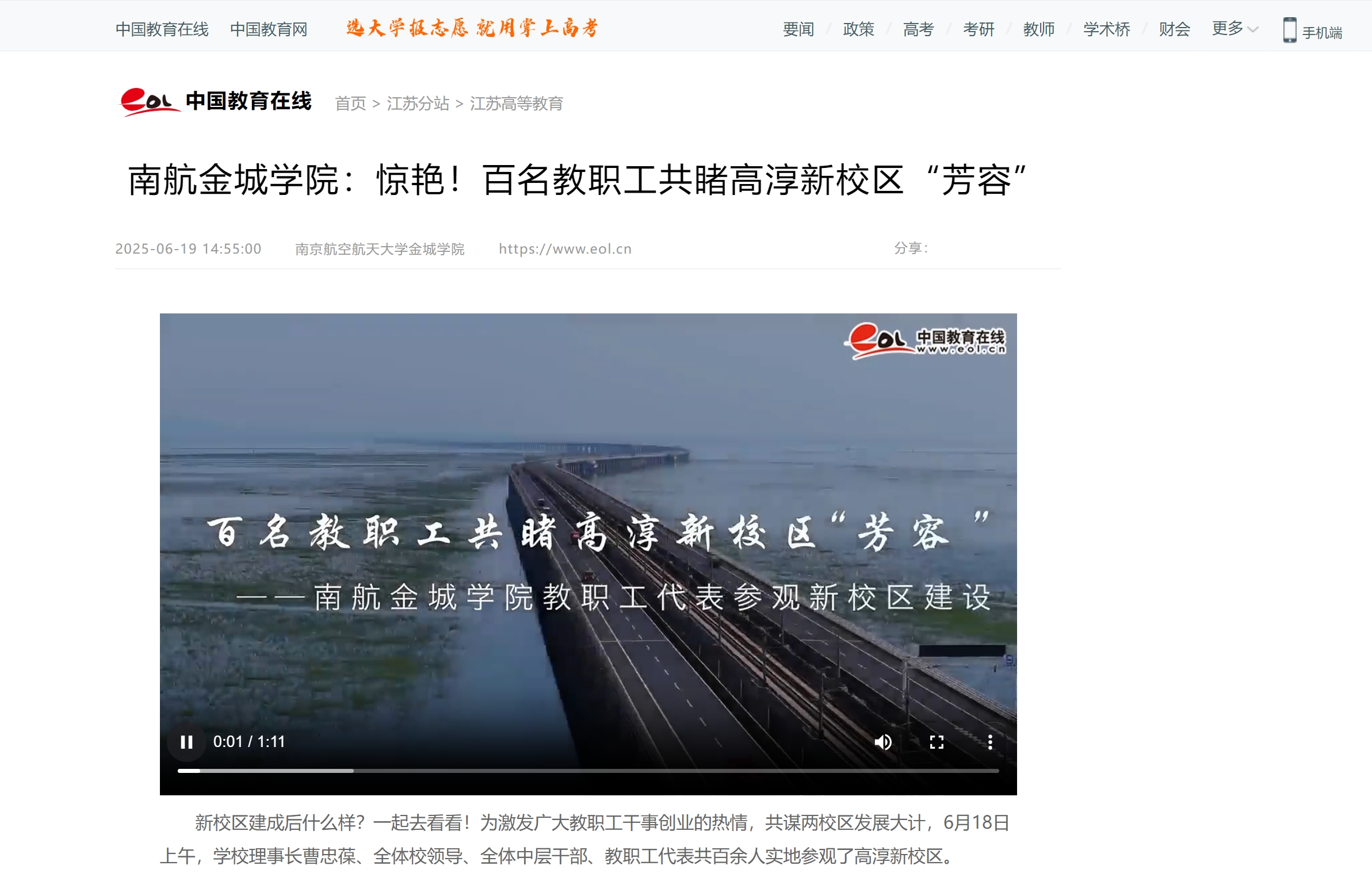 【中国教育在线】惊艳!南航黄色漫画 百名教职工共睹高淳新校区“芳容”
