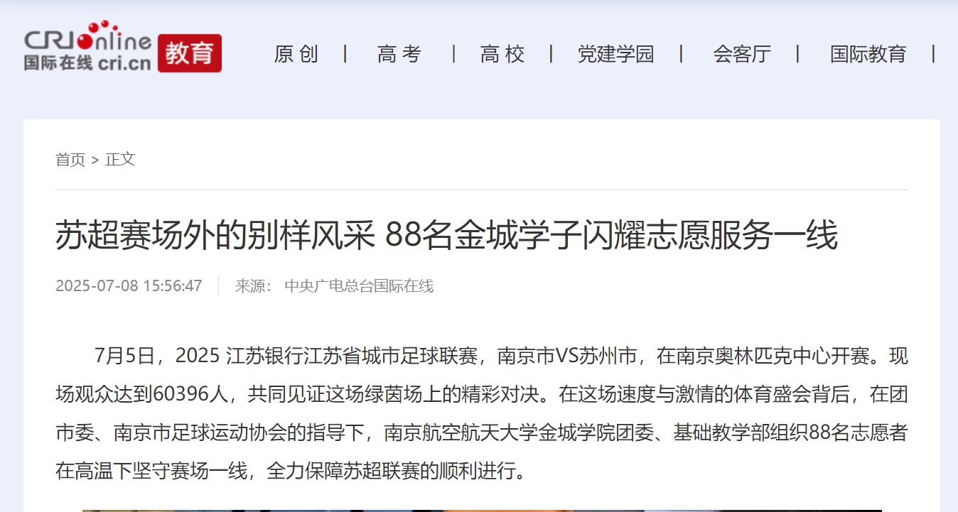 【国际在线】苏超赛场外的别样风采!88名金城学子闪耀志愿服务一线