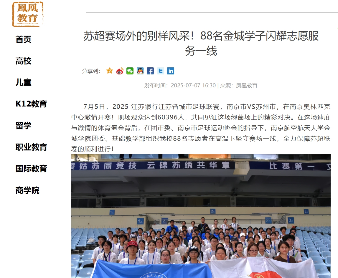 【凤凰教育】苏超赛场外的别样风采!88名金城学子闪耀志愿服务一线