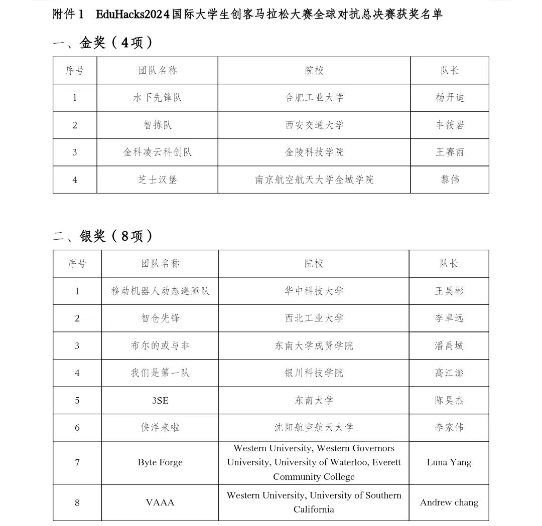 现将全球对抗总决赛结果公告,见附件1(排名不分先后);国内选拔赛结果公告,见附件2(排名不分先后)。