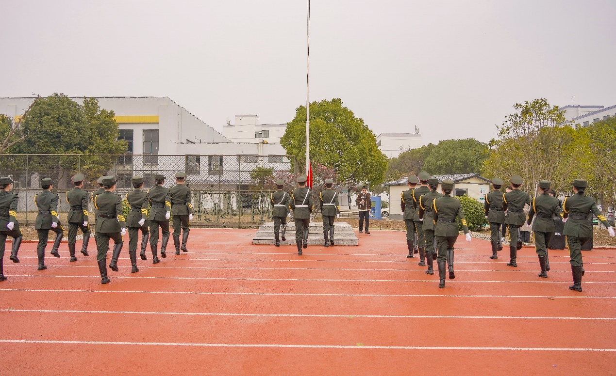 早晨8时,所有人员就位,升国旗仪式开始。在全体师生的注目礼下,国旗护卫队迈着铿锵有力的步伐,护送着五星红旗正步走向旗杆。随着庄严的《中华人民共和国国歌》响起,全体师生都面向国旗,注视着国旗的冉冉升起。