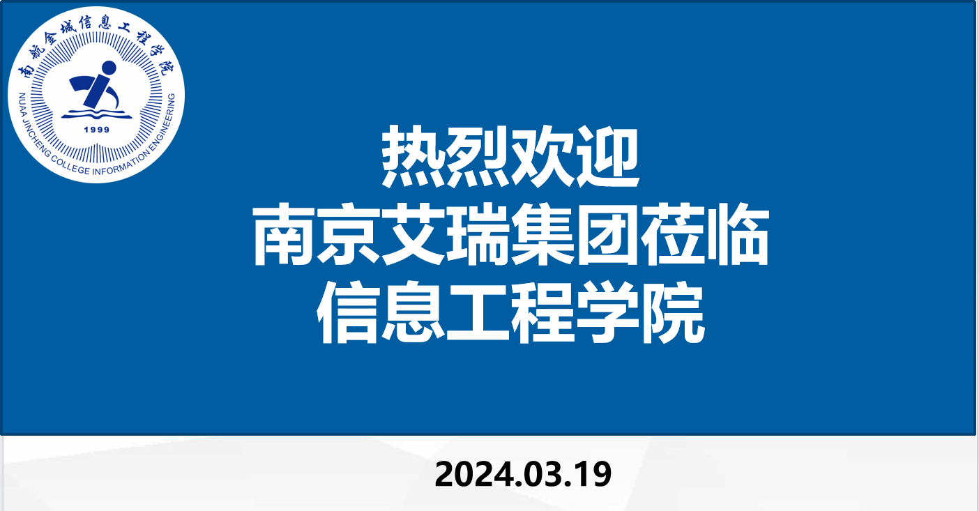 3月19日下午,南京艾瑞集团总经理徐彬一行到访信息工程学院,与信息工程学院院长闻凯、党总支副书记吴倩洽谈校企合