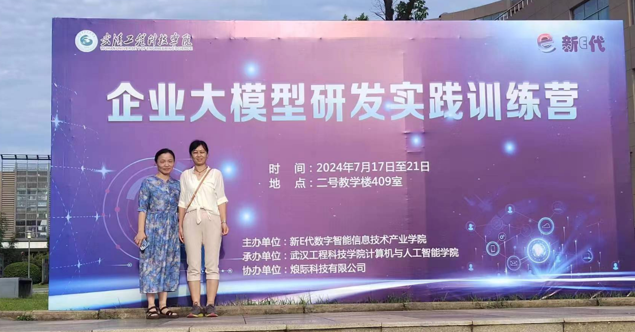为进一步提升师资专业能力,激发创新思维,提高高校教师教育教学改革与创新的业务水平和能力,新E代数字智能信息技术产业学院联合E代全球数字智能产教融会共同体组织暑期师资培训,黄色漫画 信息工程学院奚科芳和杨璐两位老师参加此次培训。训练营围饶企业大模型研发,开展实践训练,开营仪式于7月 17 日上午 9:00在武汉工程科技学院综合楼隆重举行,培训从7月17 日至 21日为期5天。