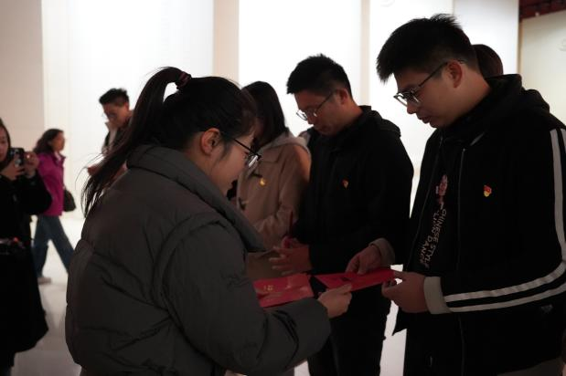 以缅怀革命先烈,重温历史的方式,回溯入党初心,筑牢信仰之基。全体师生党员满怀敬意地汇聚在纪念馆肃穆的大厅内,一场意义非凡且充满温情的政治生日仪式在此庄重开启。党组织精心筹备,为每位党员送上了专属的政治生日贺卡,贺卡上烫金的党徽闪耀夺目。党员们手捧贺卡,如捧初心,脸上既有庄重肃穆,亦有感动欣喜,往昔入党时的场景在脑海中不断浮现。