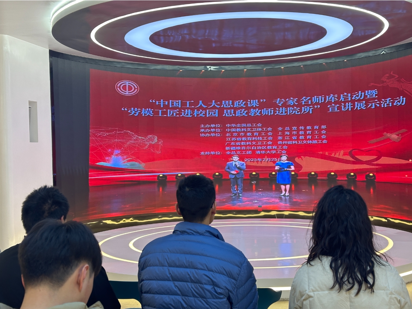 2025年2月25日,由全国总工会主办的“中国工人大思政课”专家名师库启动暨“劳模工匠进校园 思政教师进院所”宣讲展示活动在清华大学隆重举行。机电工程与自动化学院党总支组织师生党员代表在学院科技展厅共同观看了这一场融合思想性与实践性的“开学第一课”。