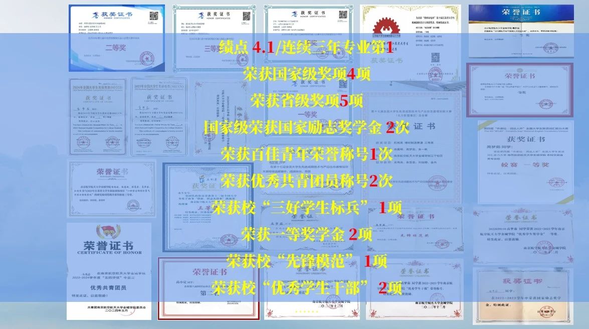 因为这份坚忍,我目前平均学分绩点4.1,自从入学来保持专业第一,获得了上面这些荣誉竞赛证书,取得了一些小小的成绩