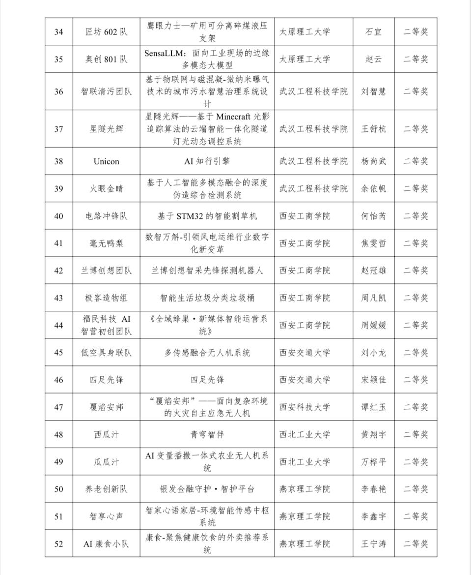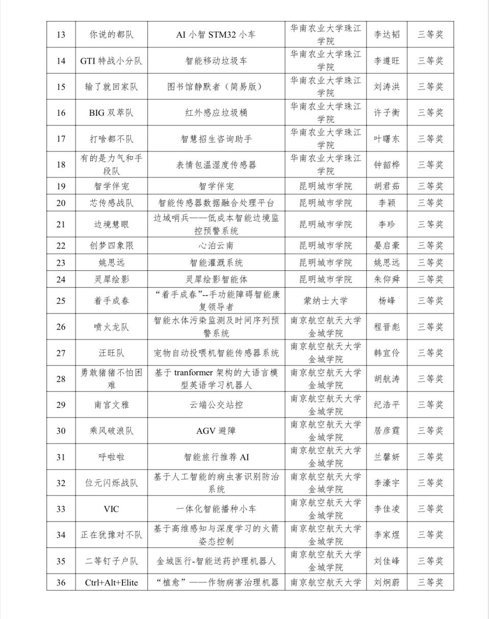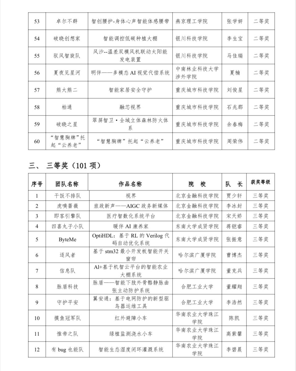 EduHacks 2025 国际大学生创客马拉松大赛评审委员会对 201 支国内选拔赛(复赛)参赛队伍按照评审规则,最终评选出一等奖 40 项,二等奖 60 项,三等奖 101 项。在全球对抗总决赛中,评审委员会对 12 支参赛队在标准命题、自主命题和产业命题三个赛程中作品评审,按照评审规则,最终评选出金奖 4 项,银奖 8 项,共 12 项。现将全球对抗总决赛结果公示,见附件 1(排名不分先后);国内选拔赛结果,见附件 2(排名不分先后)。