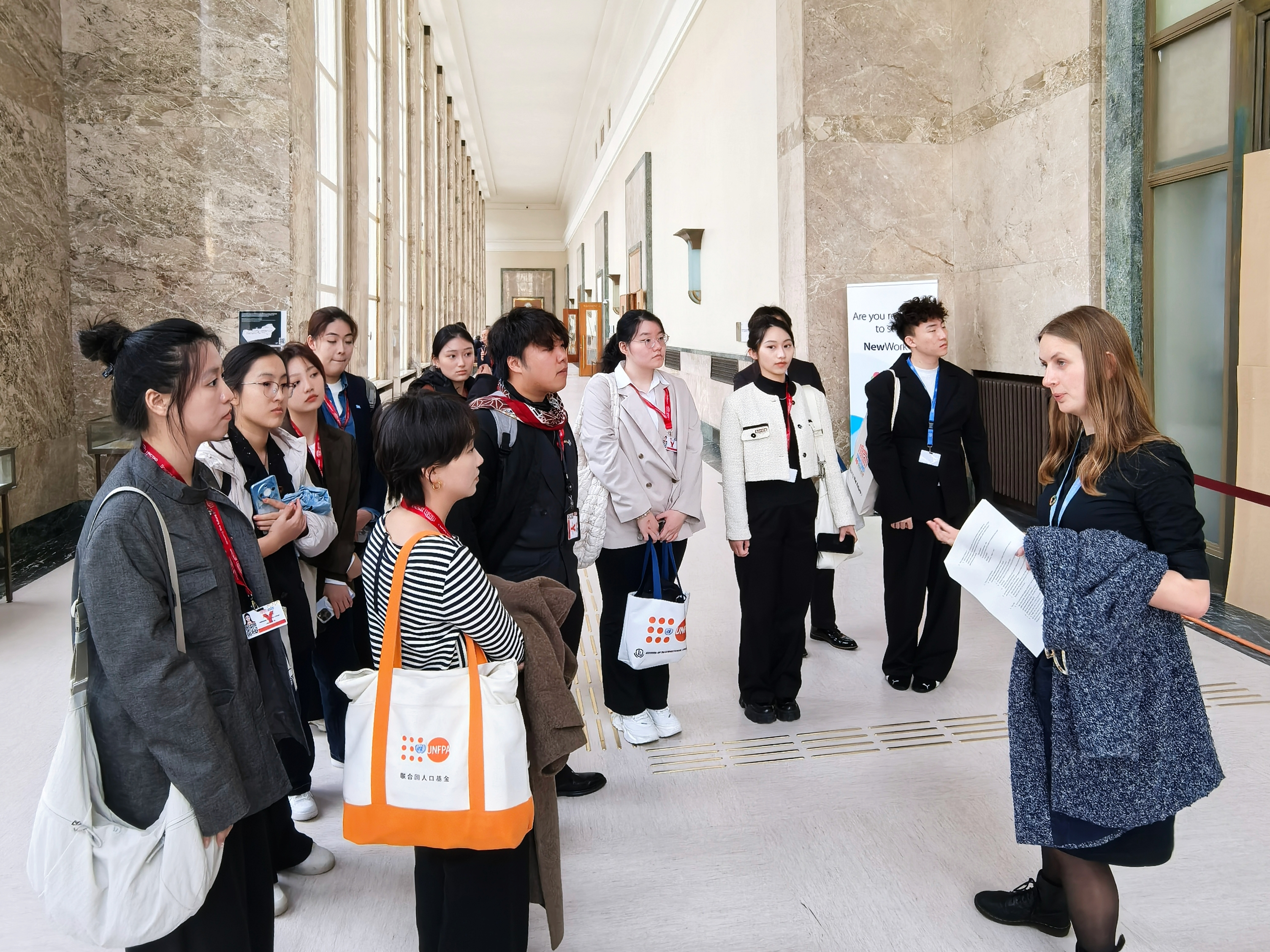 、燕京理工学院、上海立达学院等10所高校的校园大使,于10月19日至25日前往瑞士日内瓦与丹麦哥本哈根,开展以“国际发展与人道主义响应”为主题的学习交流。在日内瓦期间,中国青年代表团先后与联合国人口基金日内瓦办公室主任Pernille Fenger、性与生殖健康项目专家Bob Mwiinga Munyati进行了高层对话,并就国际人道主义响应体系等议题进行了交流。