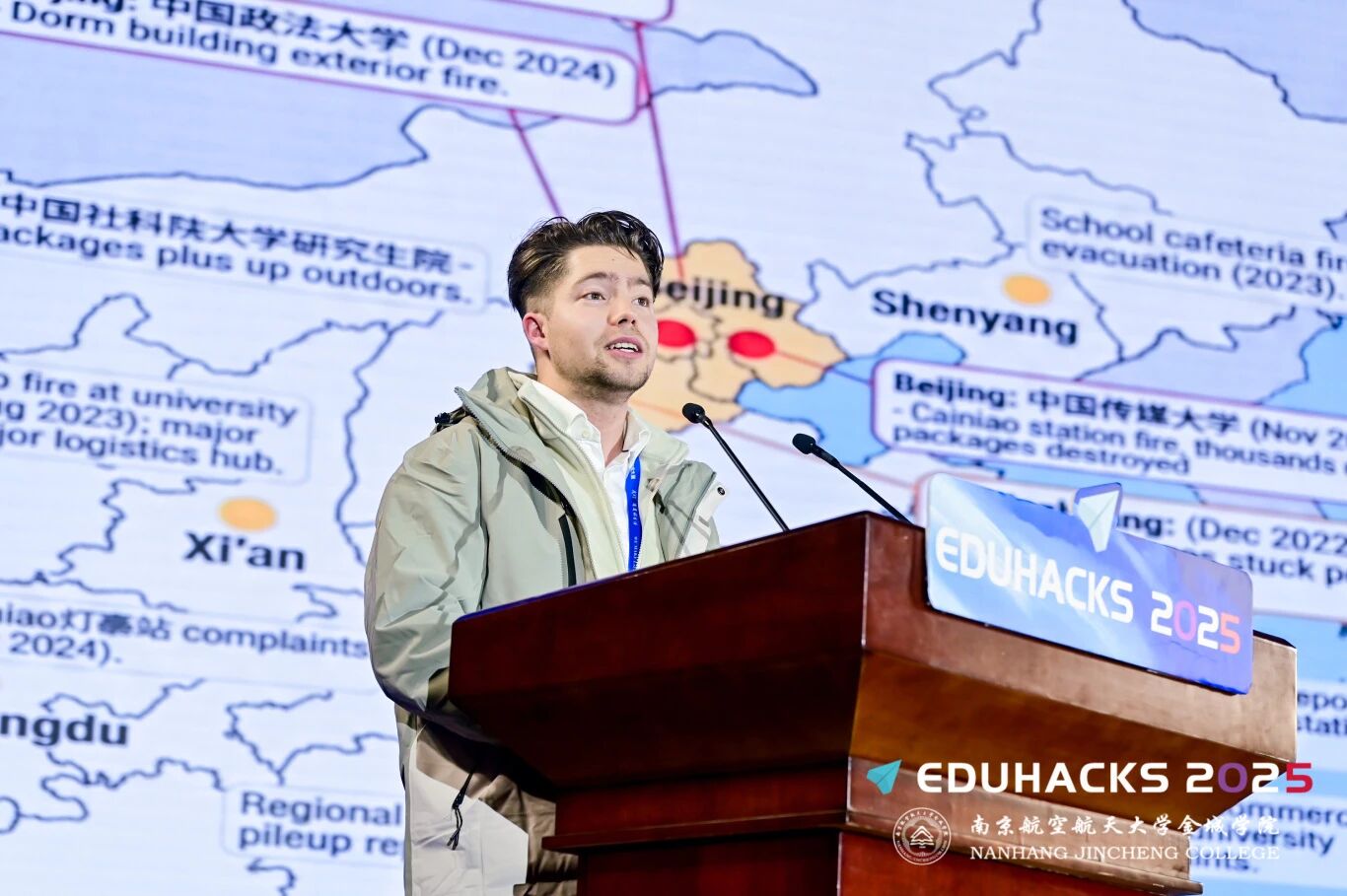 首席专家、东南大学夏志杰教授向所有参赛青年创客致以热烈祝贺,称赞选手的作品展现了对科技与人文、社会、自然和谐发展的深刻思考。他指出,在数智化时代浪潮中,青年是创新的主体,EduHacks国际大学生创客马拉松大赛正是激发创新、推动实践的关键平台。他勉励同学们将大赛收获带入今后的学习和生活,继续保持敢于质疑、勇于探索的精神,开启服务社会、贡献智慧的新篇章。他指出,创新是一场永无止境的征程,期待大家将赛事凝聚的智慧与活力,转化为推动全球数字经济发展与人工智能技术创新的强大动能,携手共创美好未来。