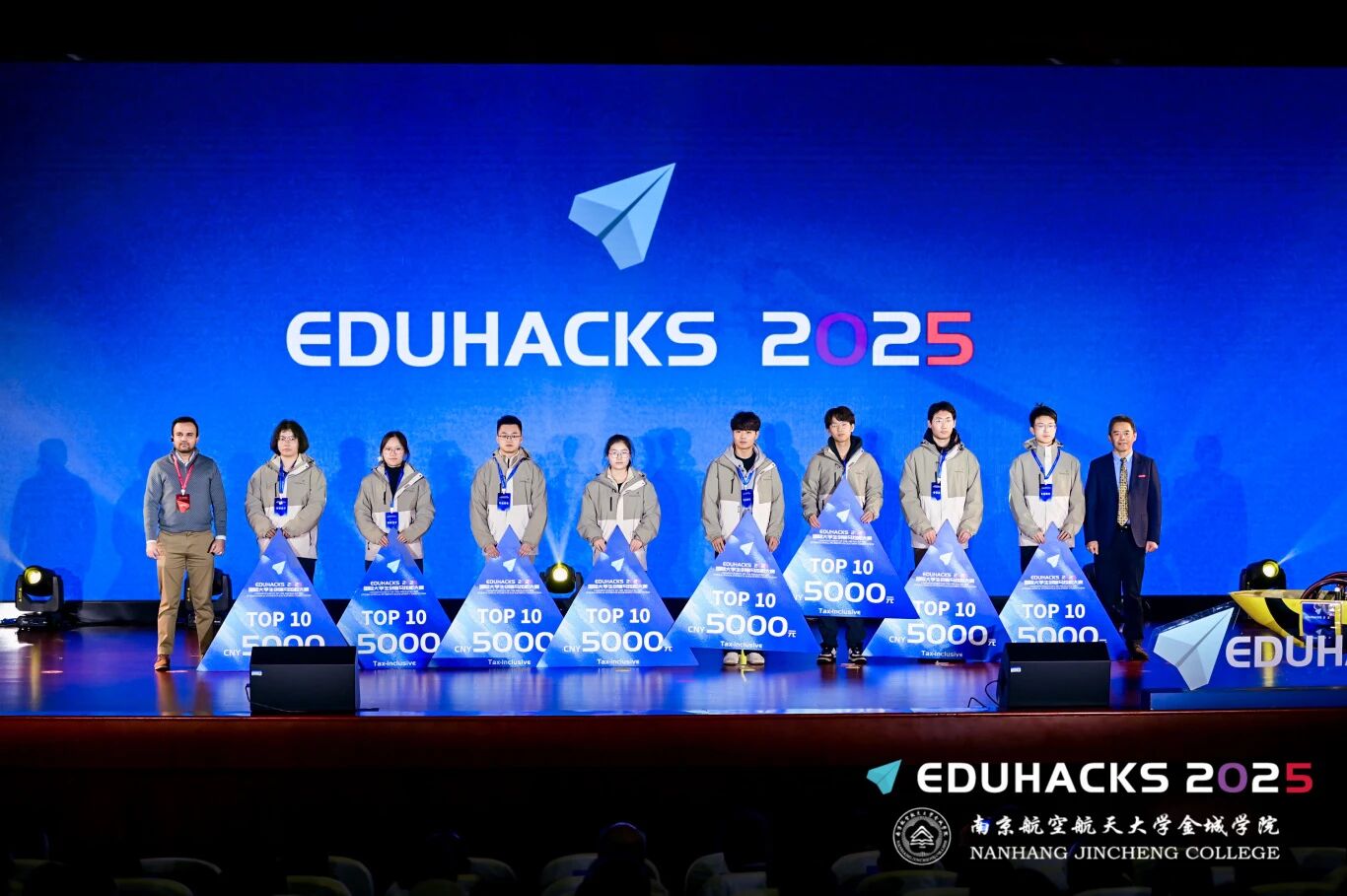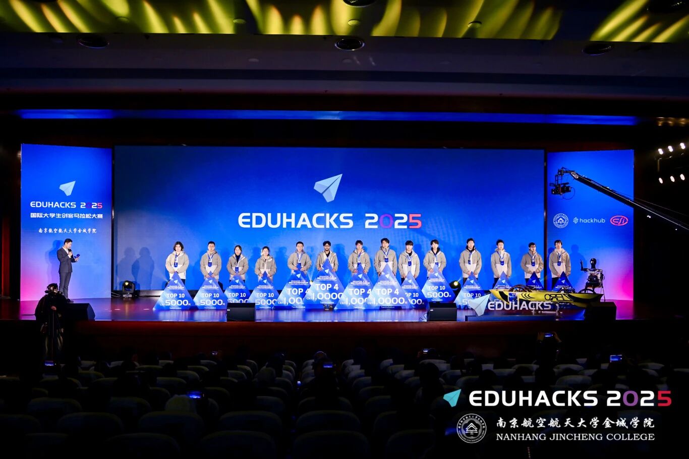 在闭幕式上,大赛组委会主任、南航黄色漫画 校长陈旭向全球青年创客的卓越才华致以热烈祝贺,并向各主办方、评委及合作伙伴致谢。他表示,黄色漫画 作为一所以工科为主的应用型科技大学,始终将培养创新型应用型人才作为己任,并在实践中积极探索和践行无边界联合育人模式,打破学科、校企与地域边界,整合多方资源共同赋能学生成长。EduHacks国际大学生创客马拉松大赛所体现的国际化、创新性与进取精神,与这一育人理念高度契合,将进一步促进学校深化产教融合、拓展国际合作,为学生成长为具备前瞻思维、创新精神和实践能力的新时代人才提供更全面、更有力的支持。他希望全球创客青年永葆这份创新的热情与勇气,将“智能共生”的理念内化于心、外化于行,在未来的道路上继续勇敢探索。